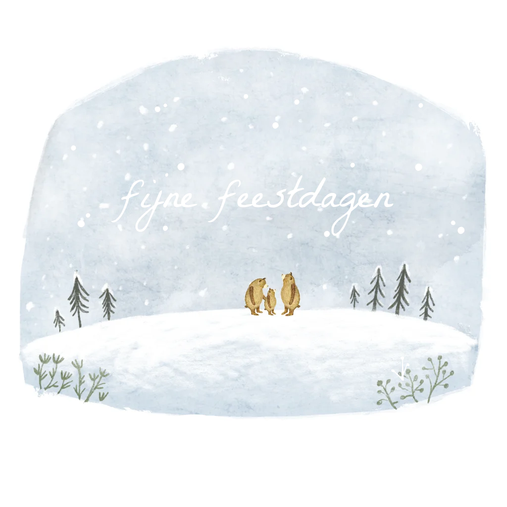 Lief kerstkaartje met een berenfamilie in de sneeuw. Dubbelzijdig zilverfolie. (let op: minimale afname is 20 stuks bij foliekaartjes)