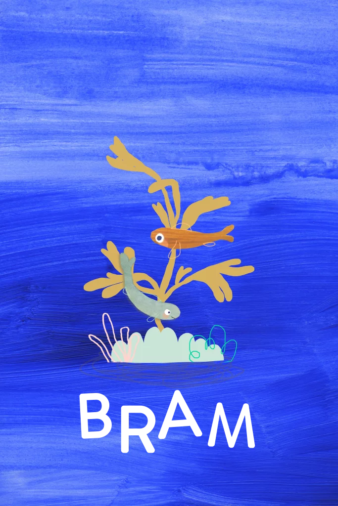 Onderwater geboortekaartje Bram op losse speelse wijze in foliedruk, planten en twee vissen in de typische collagestijl van Image de Julie. Kijk in de beeldbank voor meer mooie illustraties en geef je eigen draai aan het geboortekaartje!