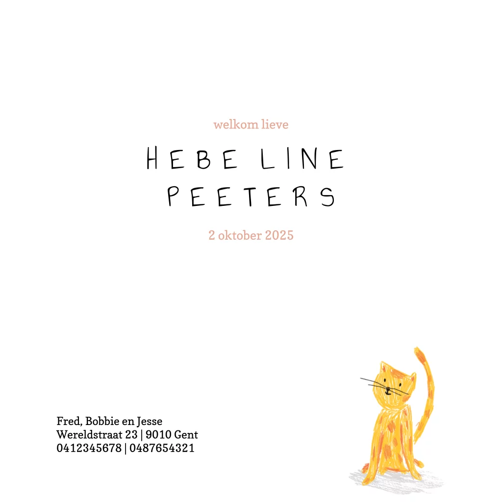 Getekend geboortekaartje meisje met gele kat