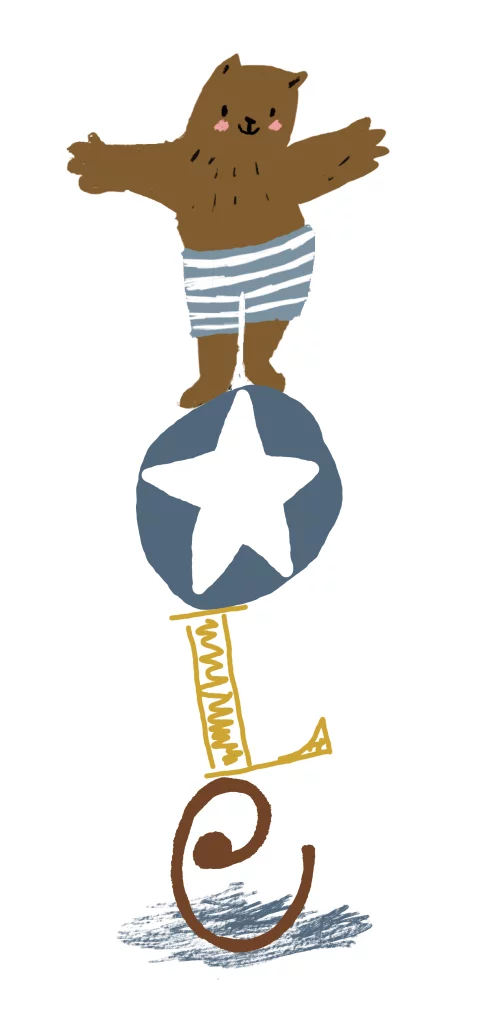 Grappig geboortekaartje Ole met beer die balanceert op de letters van zijn naam.