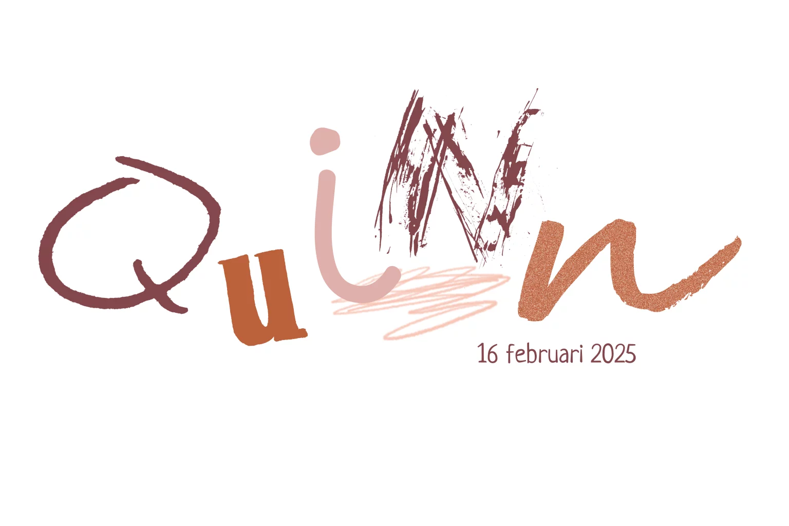 Typografisch geboortekaartje Quinn met donkerrode en oudroze letters.