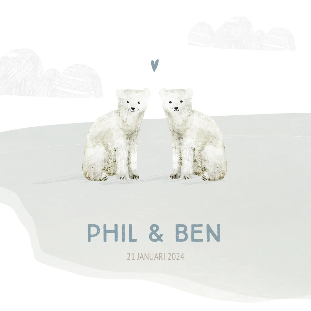 Geboortekaartje voor een tweeling met ijsbeertjes op een ijsschots
