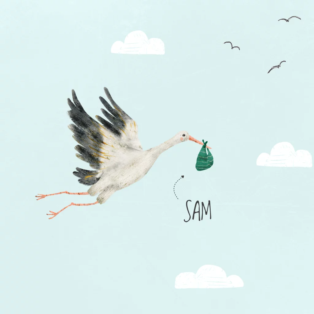 In de beeldbank staan ook een ooievaar met een blauwe en een roze bundel. Kom je er niet uit? Ik help je graag!