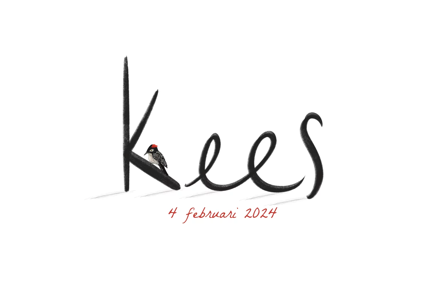 Dit stoere kaartje Kees is bijzonder door de handgeschreven naam. Je past het aan door de juiste letters uit de beeldbank te pakken (dus niet uit de lettertypes in tekst). Zet de letters op de goede plek en schuif alles weer netjes op de juiste plek.