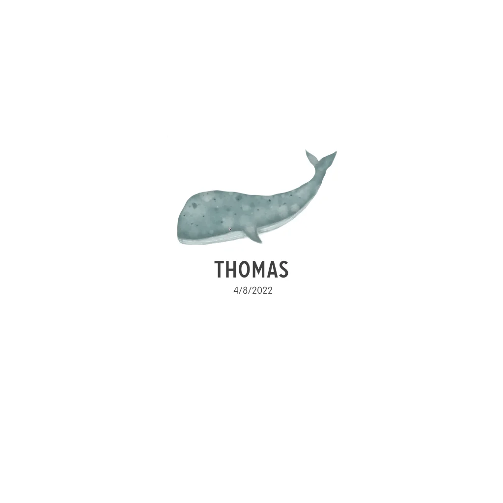 Lief minimalistisch kaartje met een walvis voor een jongen of meisje. Pas het lettertype gemakkelijk zelf aan.