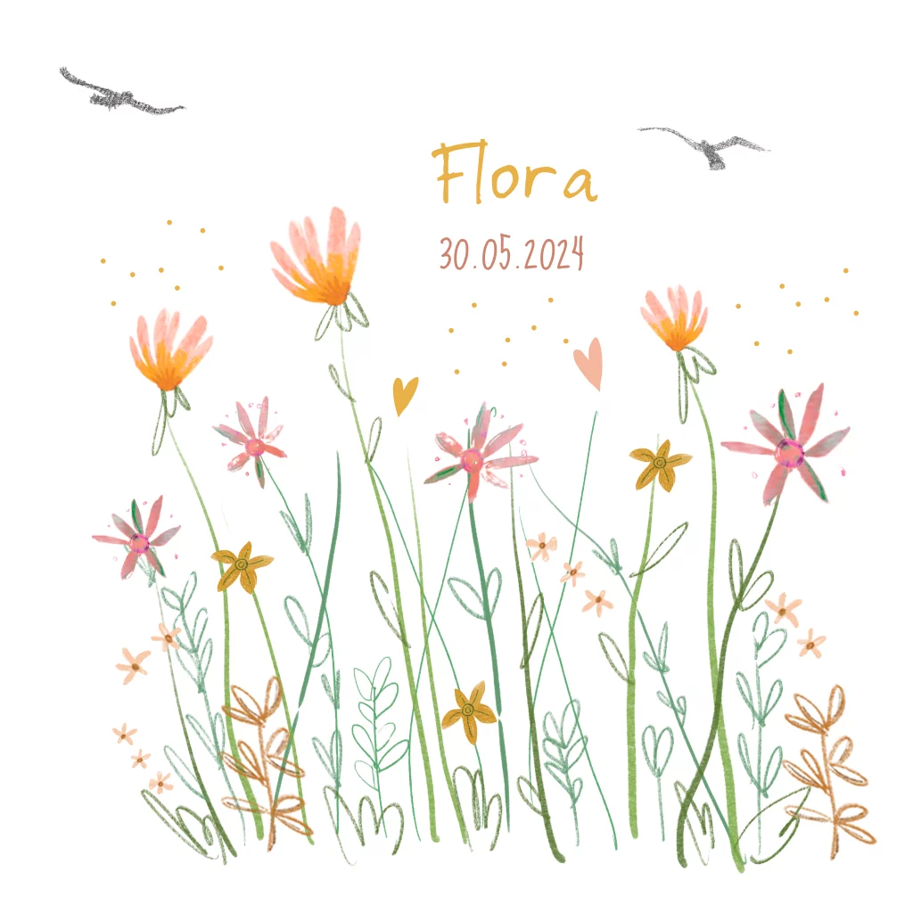 Zomers geboortekaartje met bloemenweide