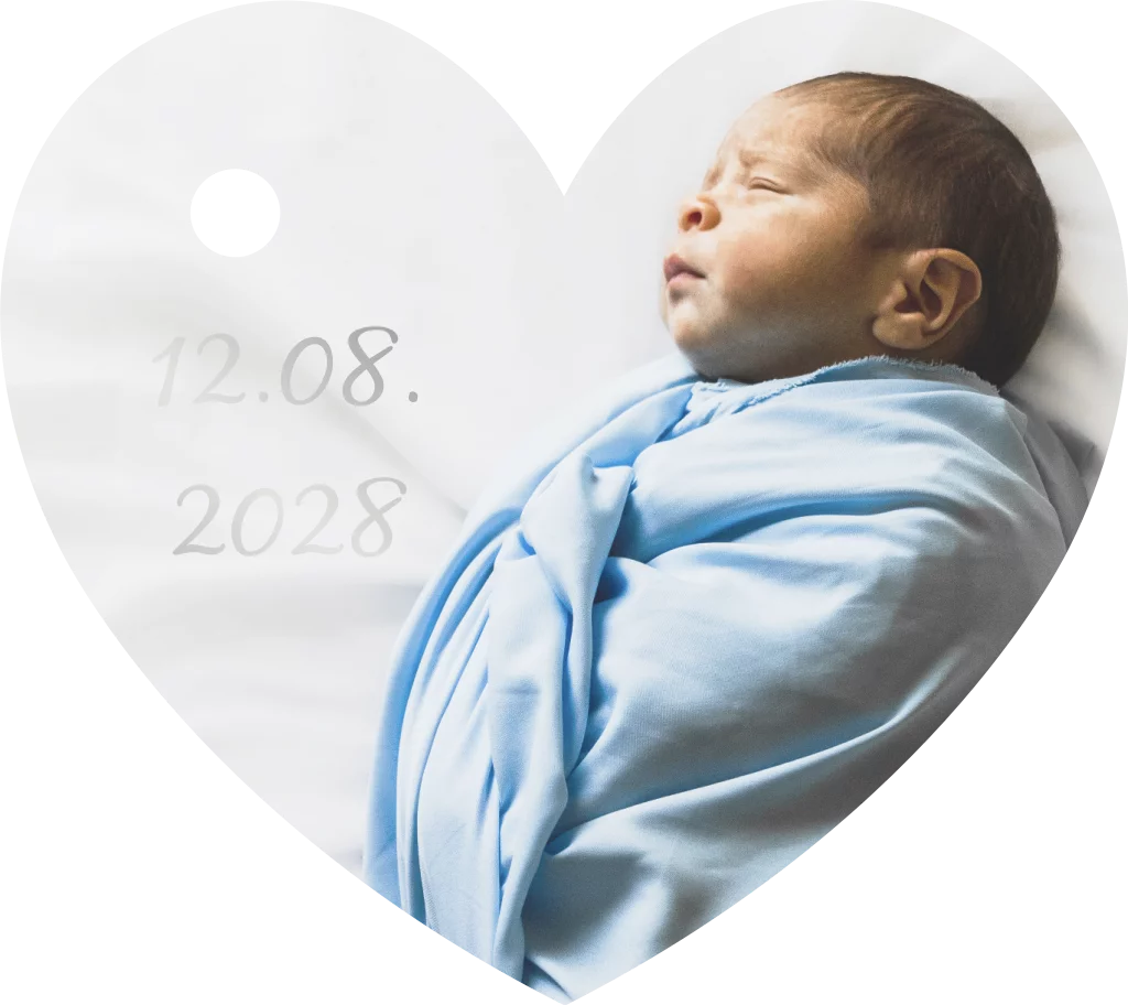 Labeltje hartje met foto van je kindje. Klik op de foto en vervang de foto voor eentje met jouw eigen baby.