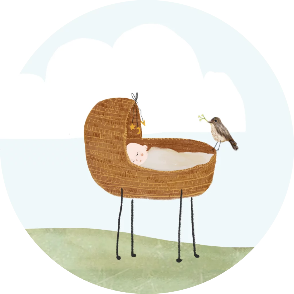 Sluitzegels met wiegje en merel