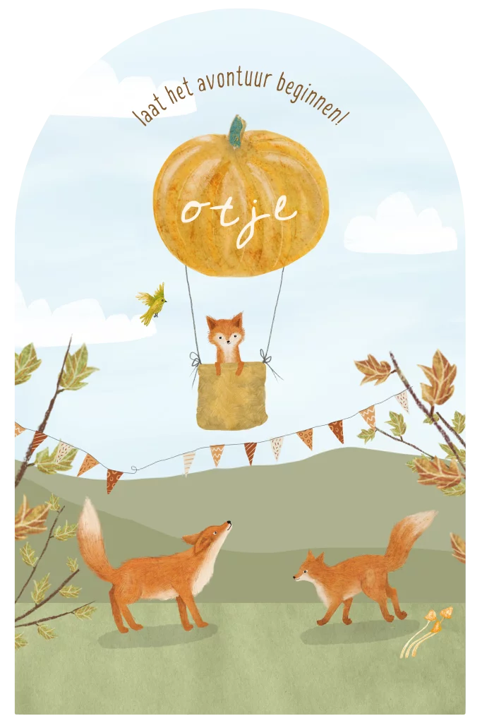 Geboortekaartje boog vosje luchtballon pompoen