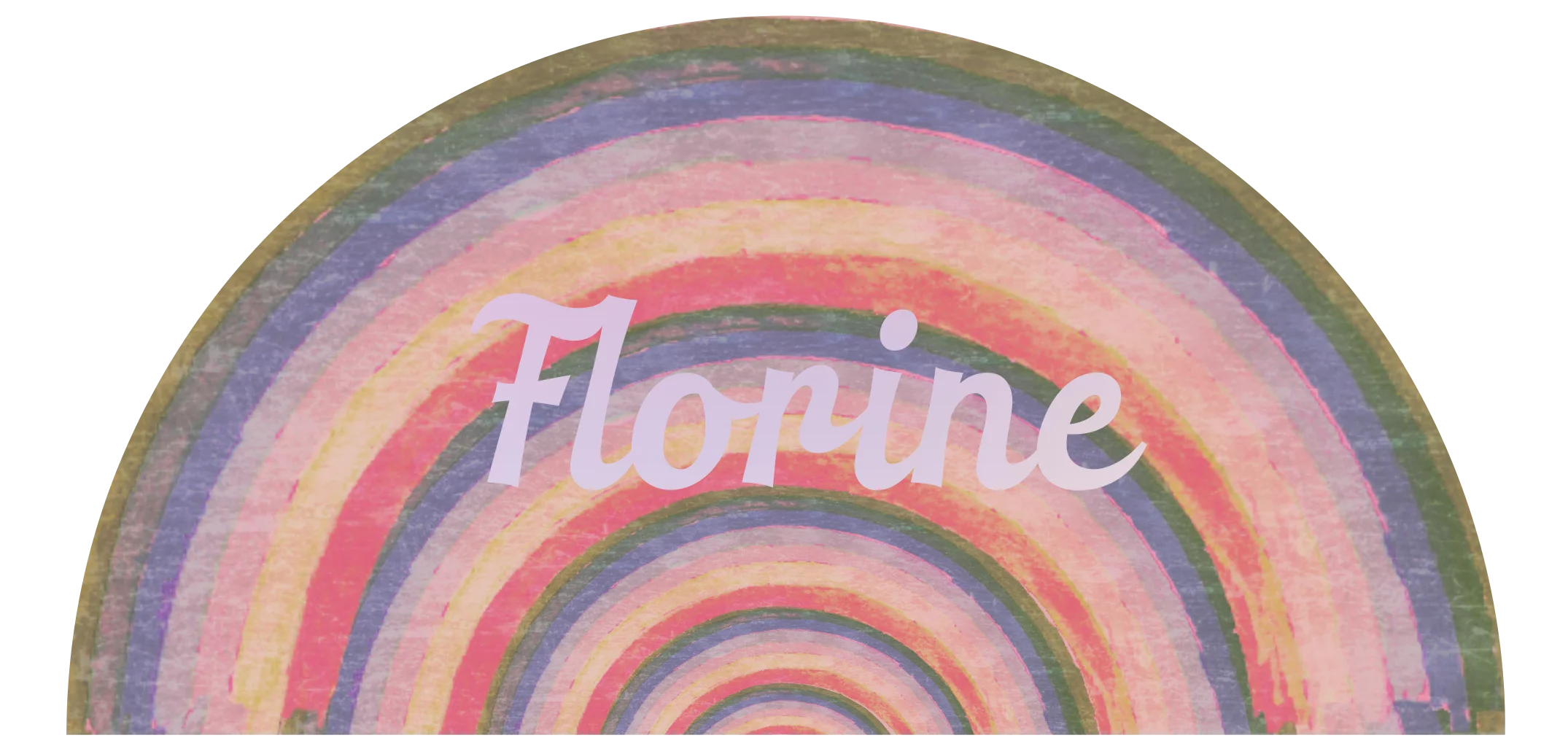Geschilderd geboortekaartje Florine in boogvorm met holografische folie. De regenboog is geschilderd in oudroze, paars en groen.