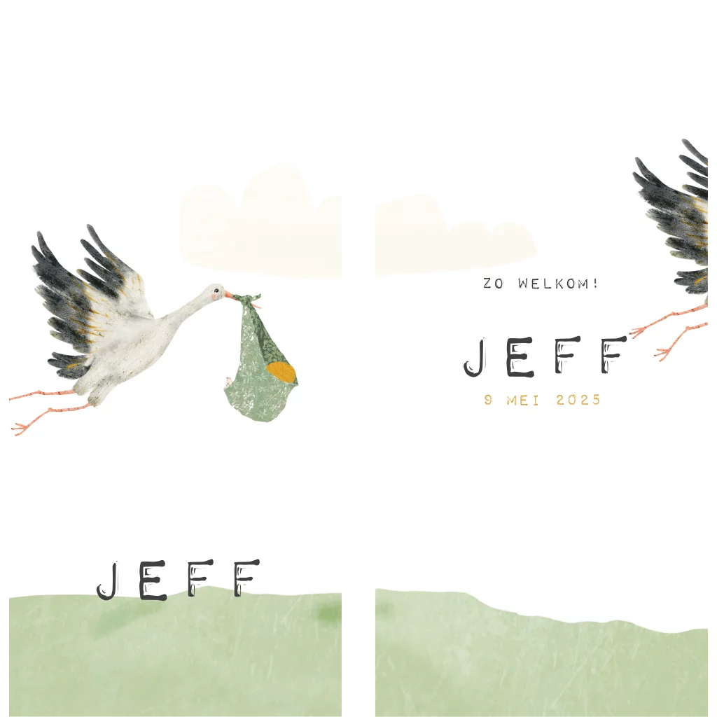 Geboortekaartje labeltjes Jeff met ooievaar en babybuidel. Doe er een leuk gekleurd touwtje door en dan heb je een bijzondere geboortekaart!