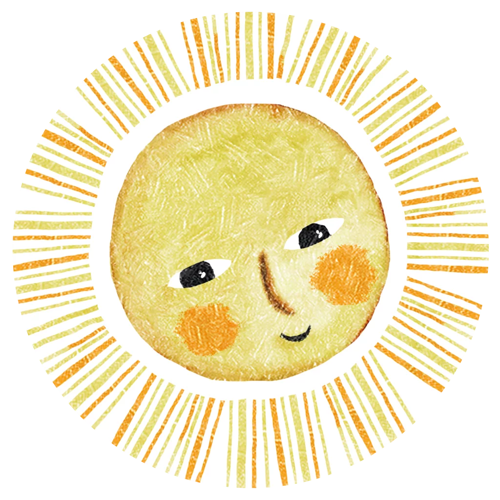 Rond en zomers geboortekaartje met een zonnetje met een gezichtje