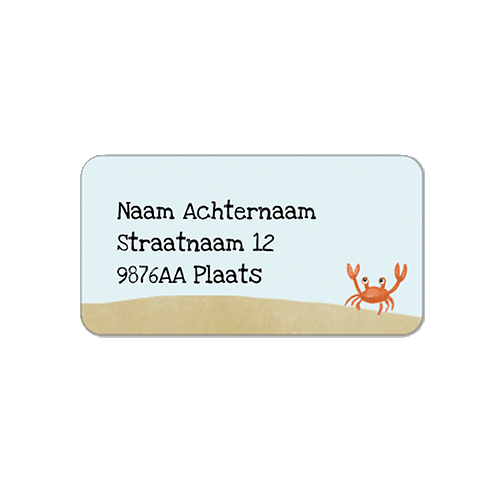 Adressticker met krabbetjes zeebodem. 6,5 x 3,4 cm met ronde hoek (14 per vel)