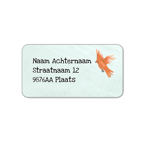 Adressticker met rood-roze vogeltje 6,5 x 3,4 cm met ronde hoek (14 per vel) Je kunt deze stickers zelf aanpassen in de editor