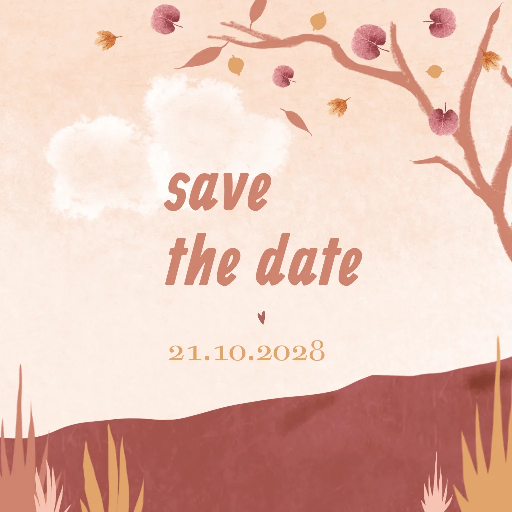 Getekende save the date kaar romantisch oudroze herfstlandschap