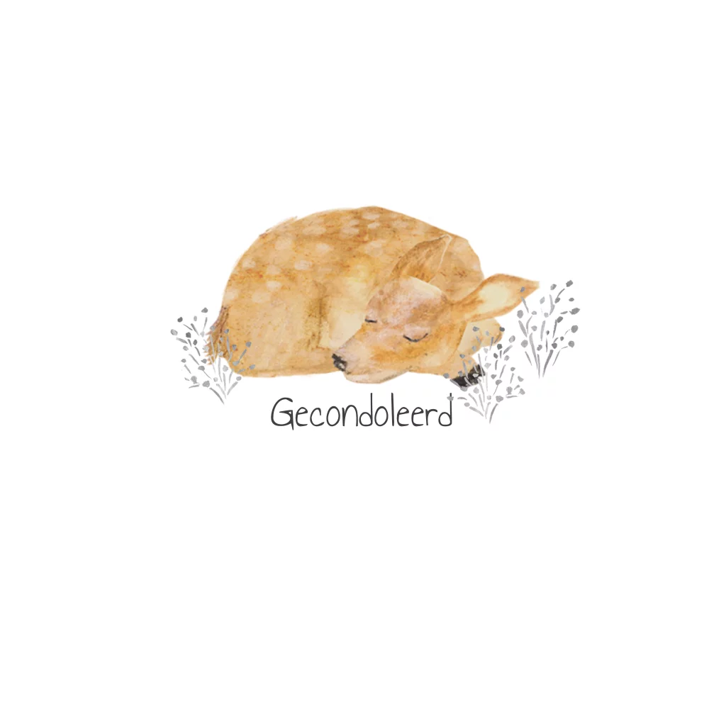 Condoleance kaartje met een slapend hertje. Een eenvoudig en lief kaartje voor een vreselijk verdrietige gebeurtenis.