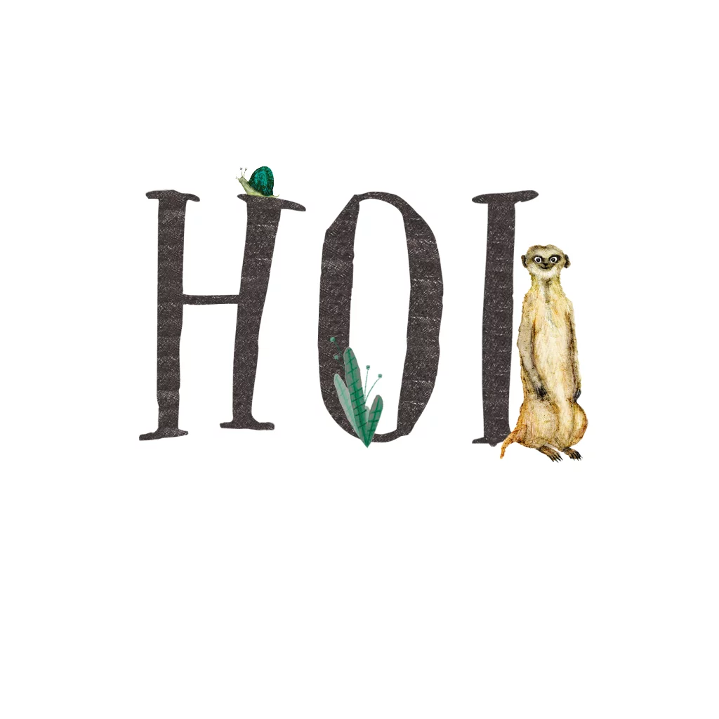 Grappig wenskaartje Hoi met een stokstaartje. Voor elke gelegenheid. Je kunt aan de binnenzijde je eigen tekst zetten.