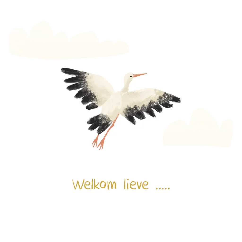 Wenskaartje Ooievaar Welkom lieve ...