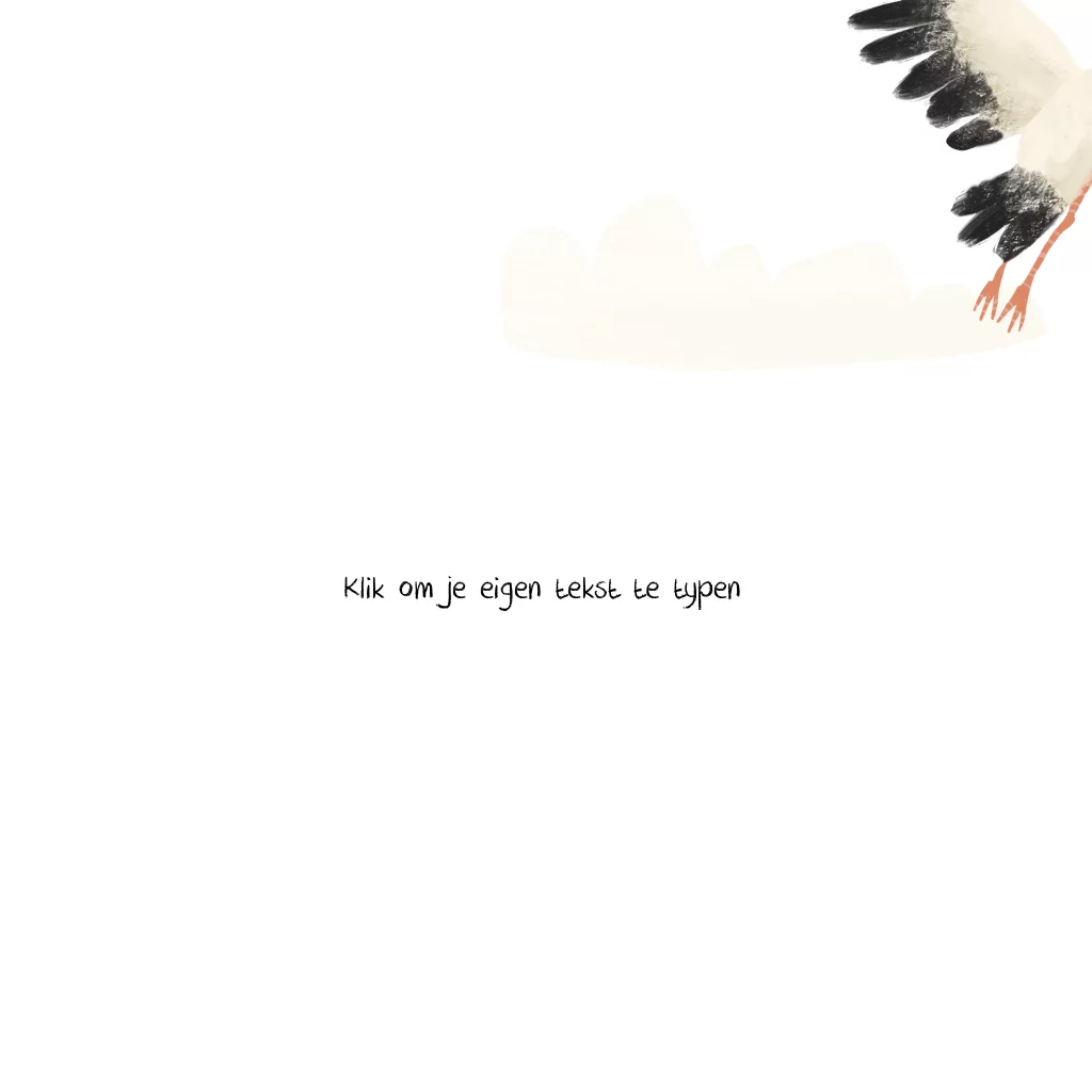 Wenskaartje met met ooievaar met de tekst Welkom lieve... (zelf in te vullen). Lief kaartje om te sturen als een kindje is geboren!